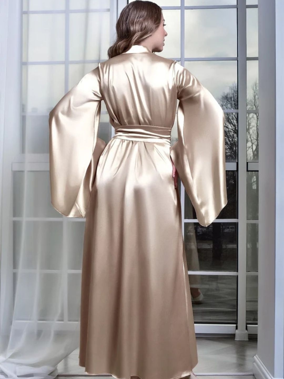 11006- Beige Glamorous Satin Nightwear Robe – Soft & Silky Feel