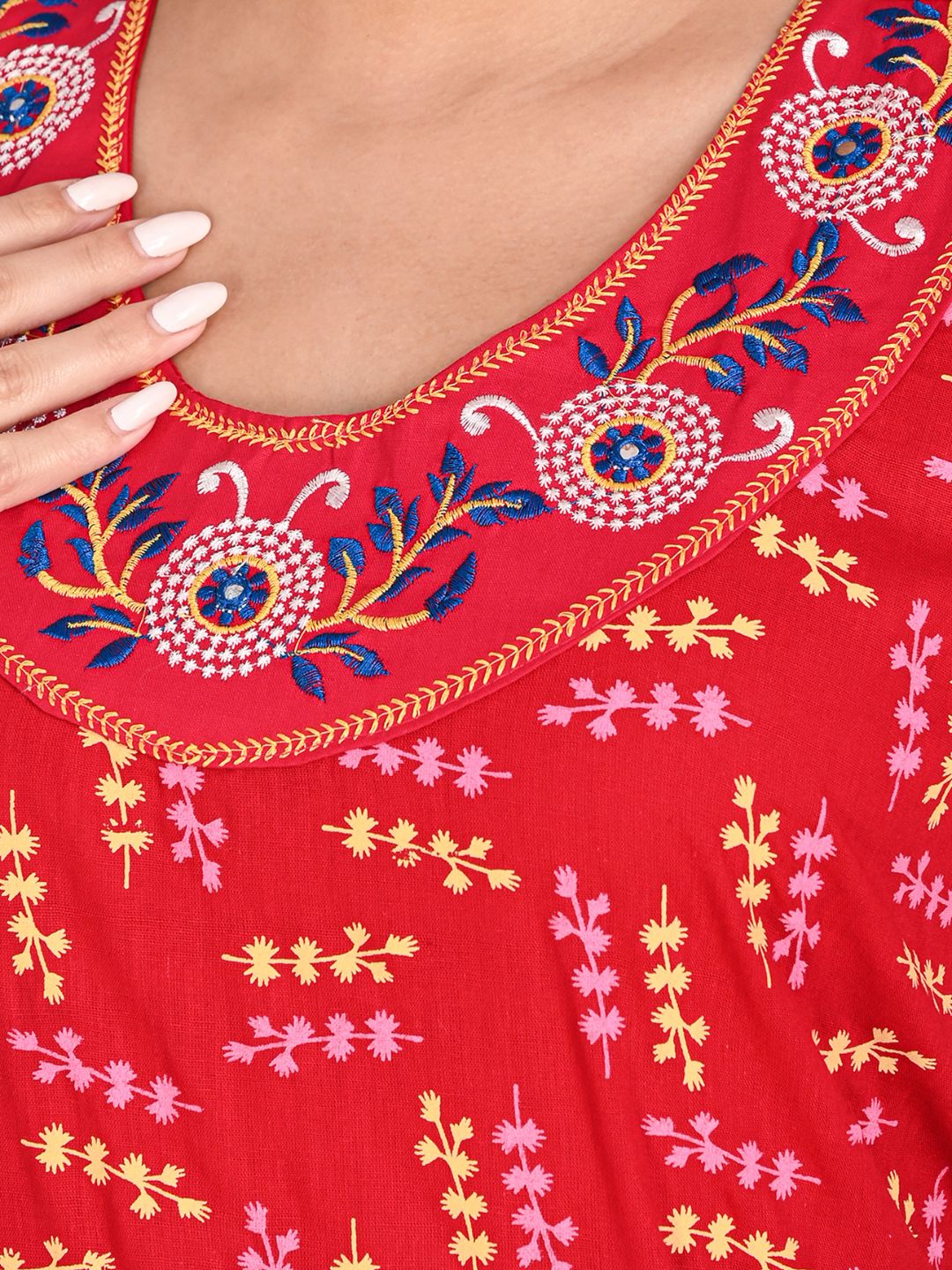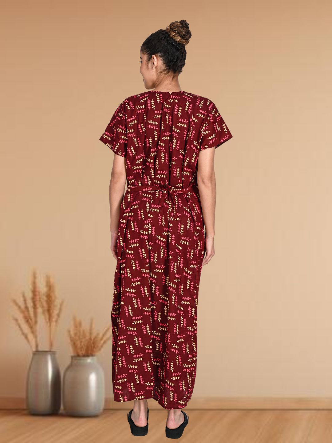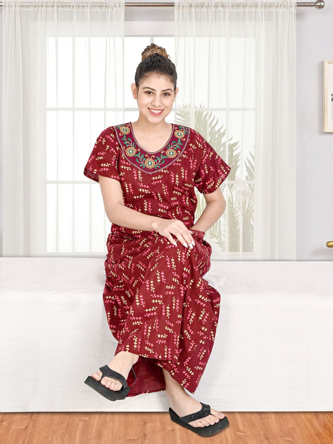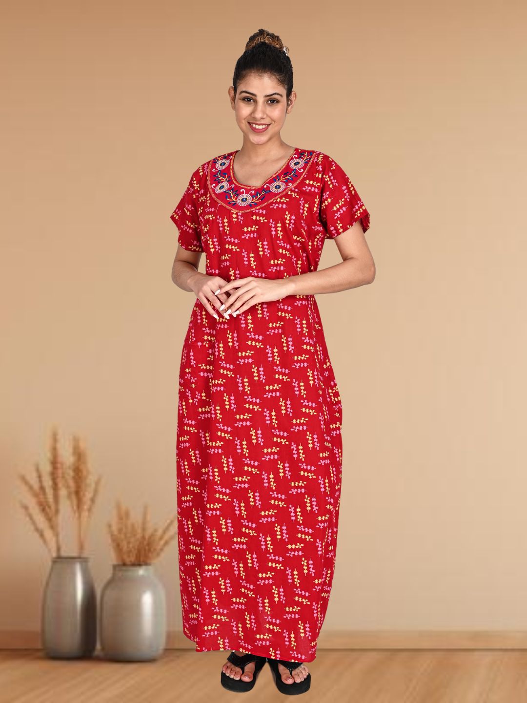 1904-Women's Pure Cotton Blended Printed Maxi Dress for Daily & Night Wear Floral Nighty