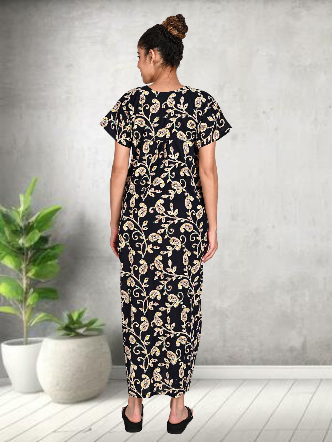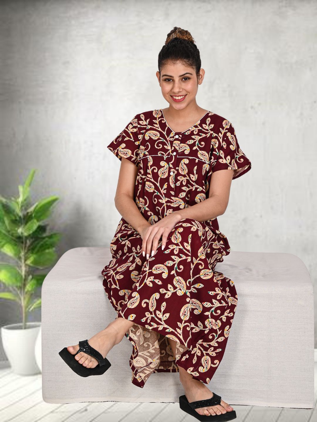 1950-Women's Pure Cotton Blended Printed Maxi Dress for Daily & Night Wear Floral Nighty