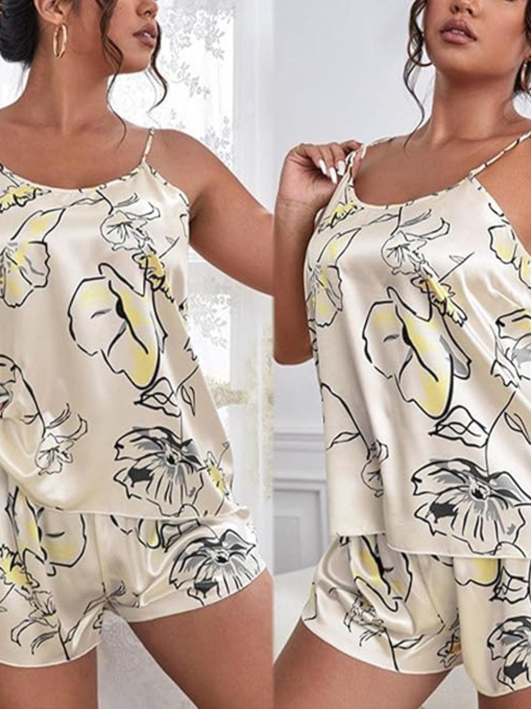 37-Celestial Print Satin Camisole & Shorts Nightwear Set