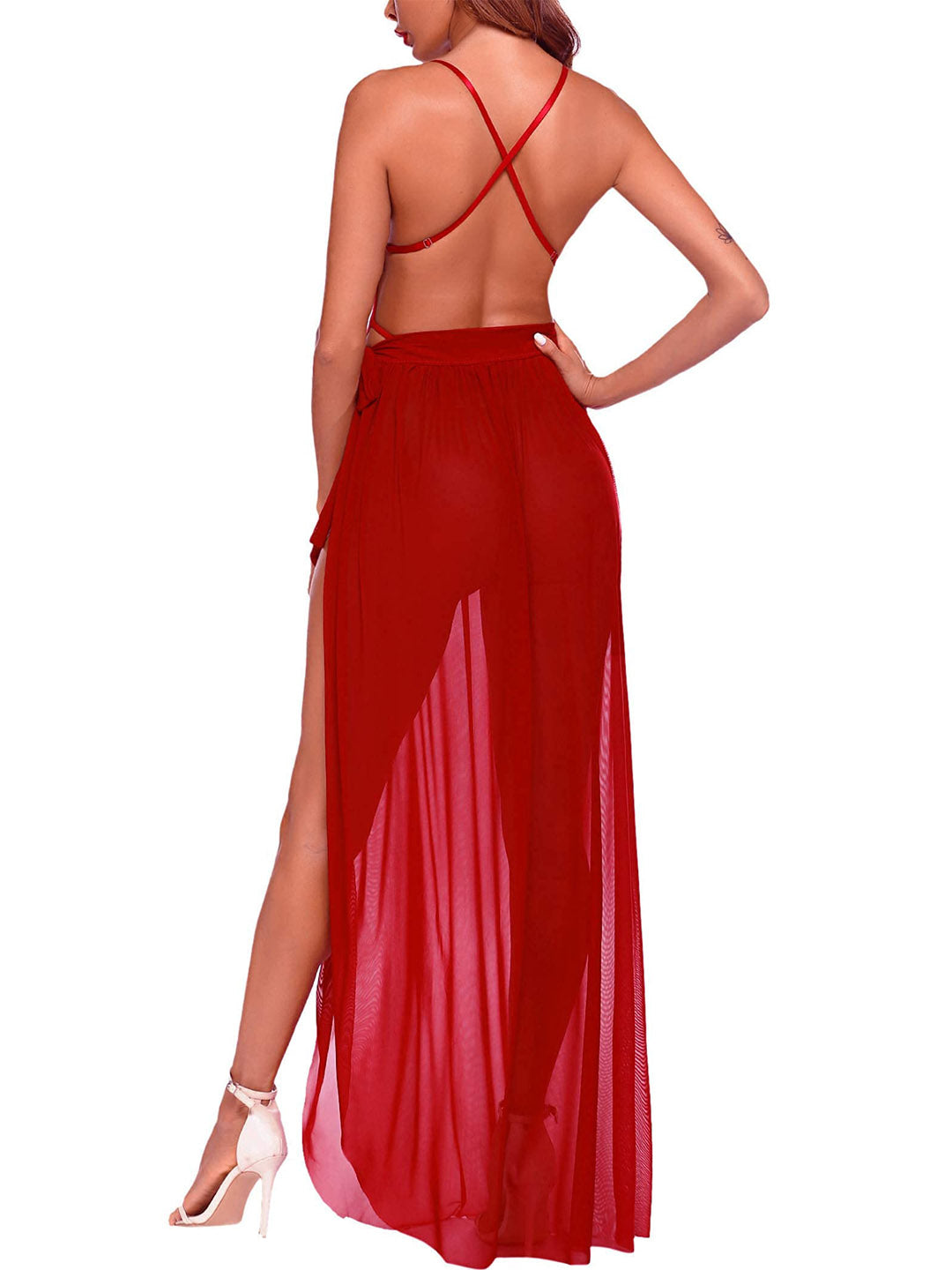 Skirt: Sheer with high slit, light coverage