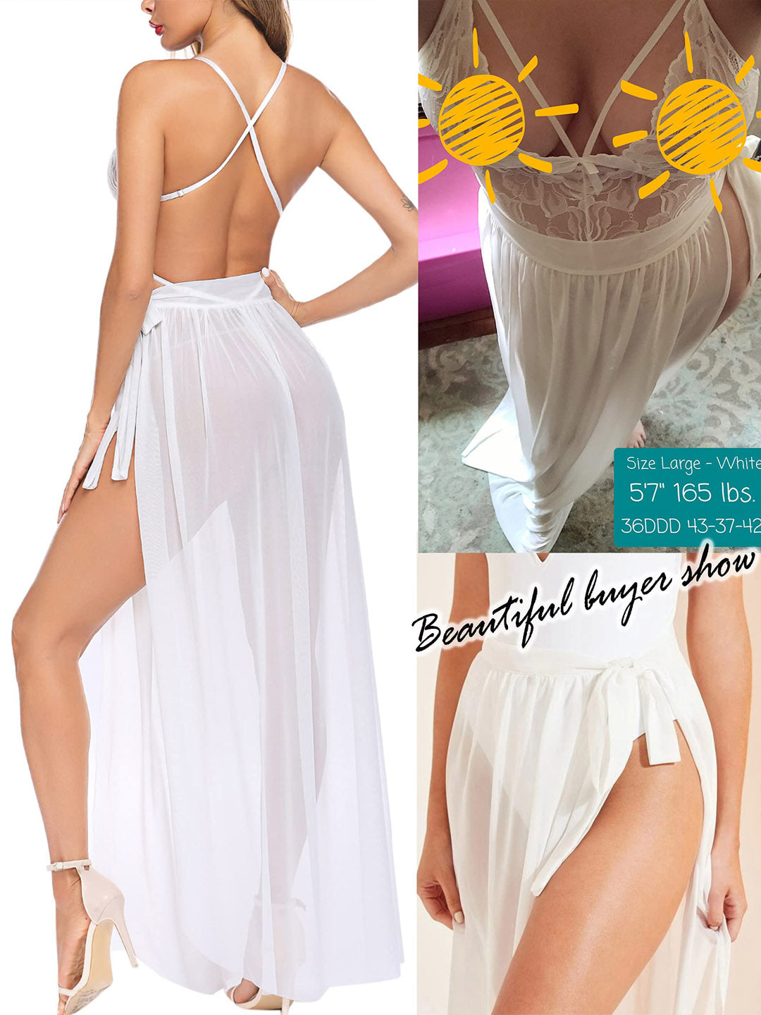 Skirt: Sheer with high slit, light coverage