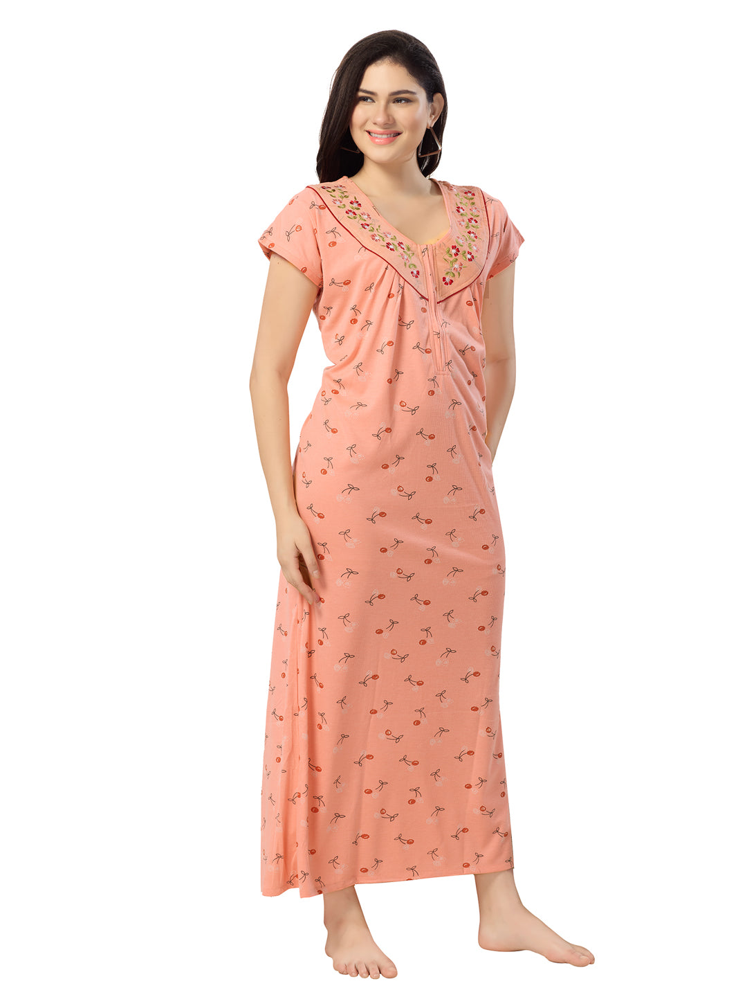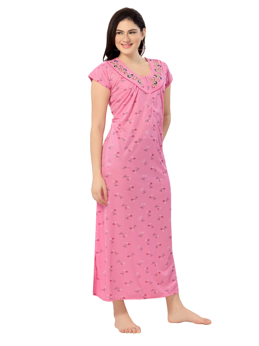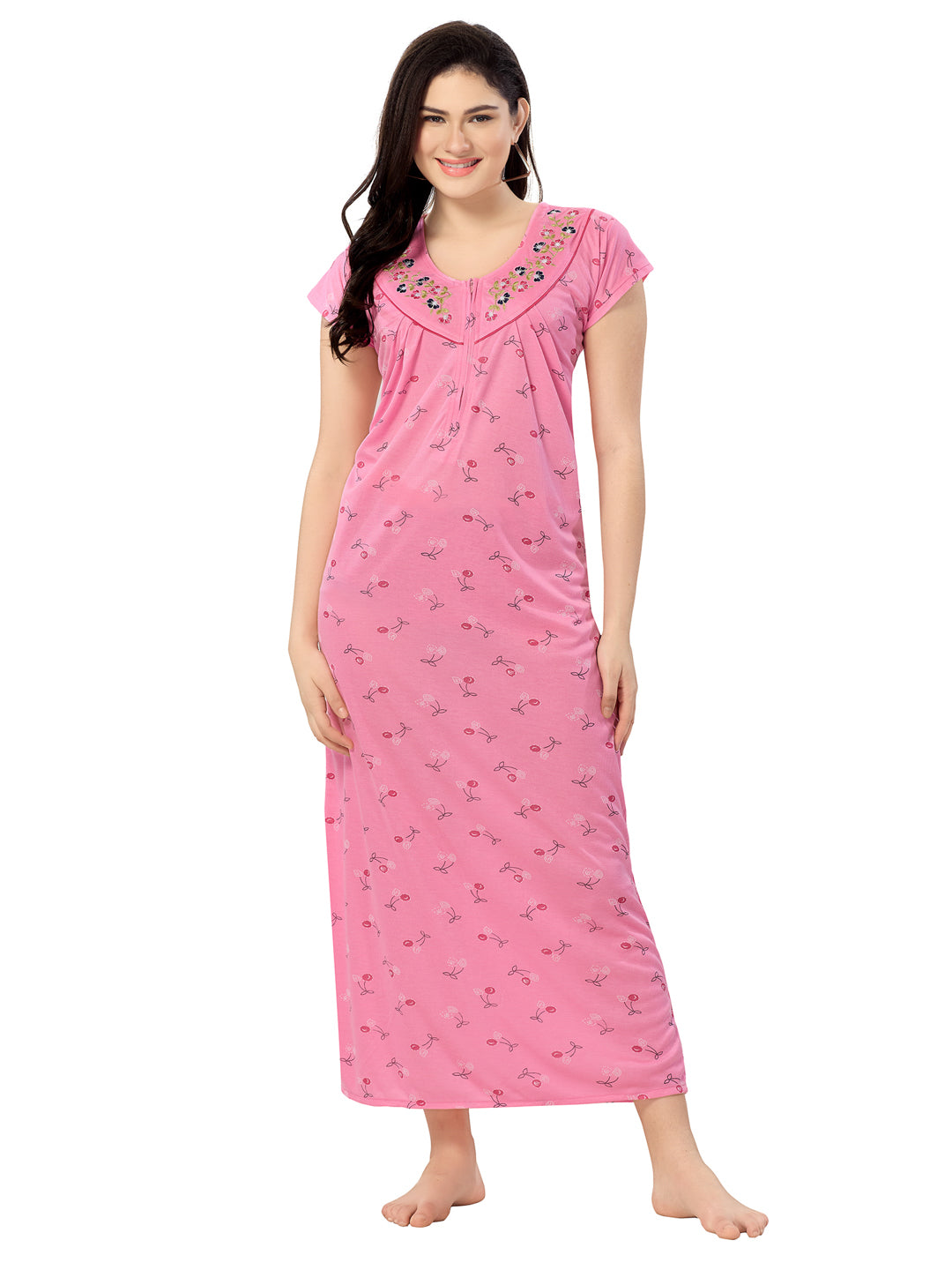 Women's Pure Cotton Blended Printed Maxi Dress for Daily & Night Wear Floral Nighty