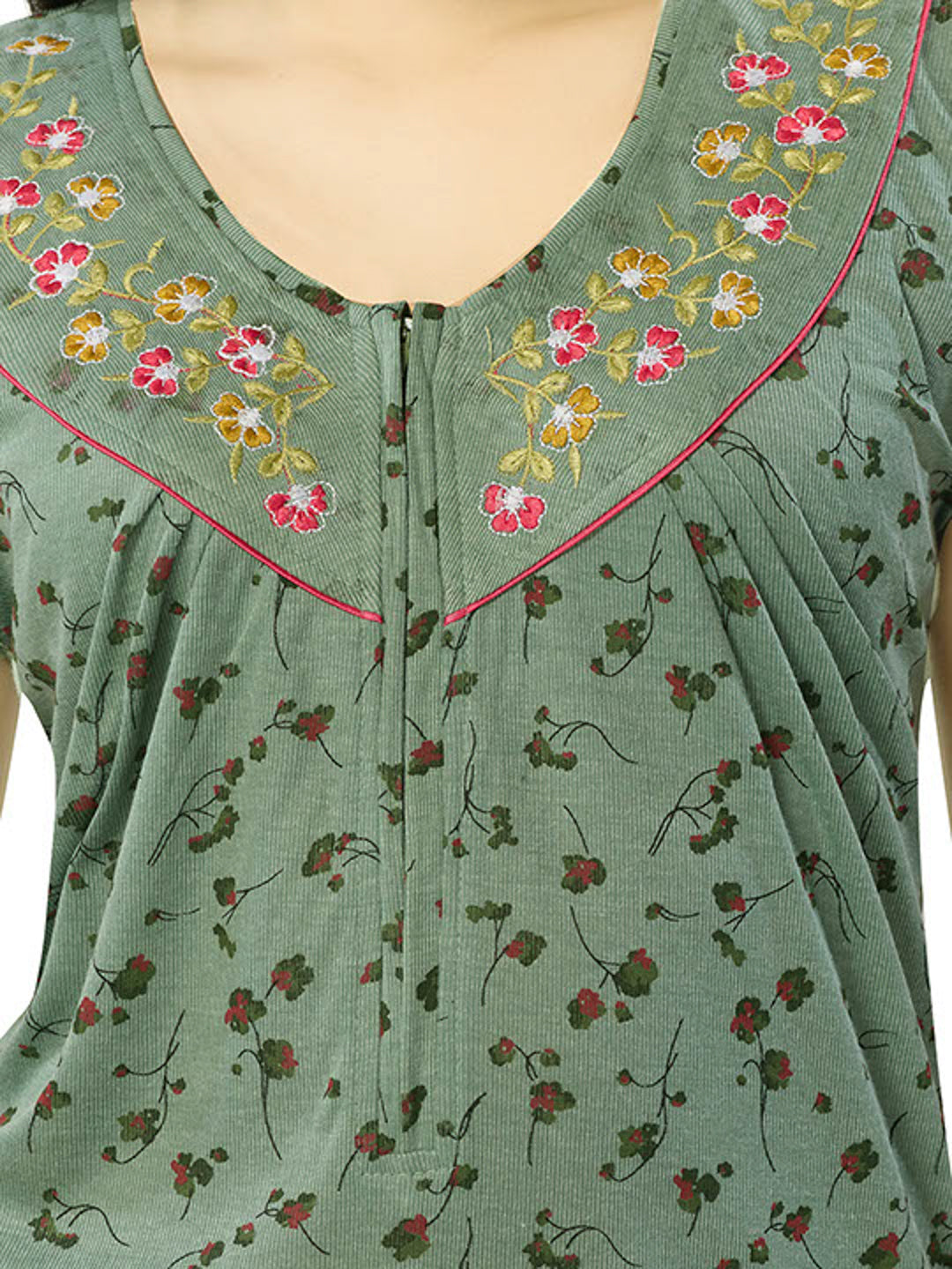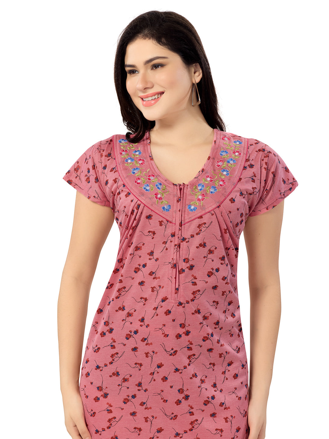 Women's Pure Cotton Blended Printed Maxi Dress for Daily & Night Wear Floral Nighty