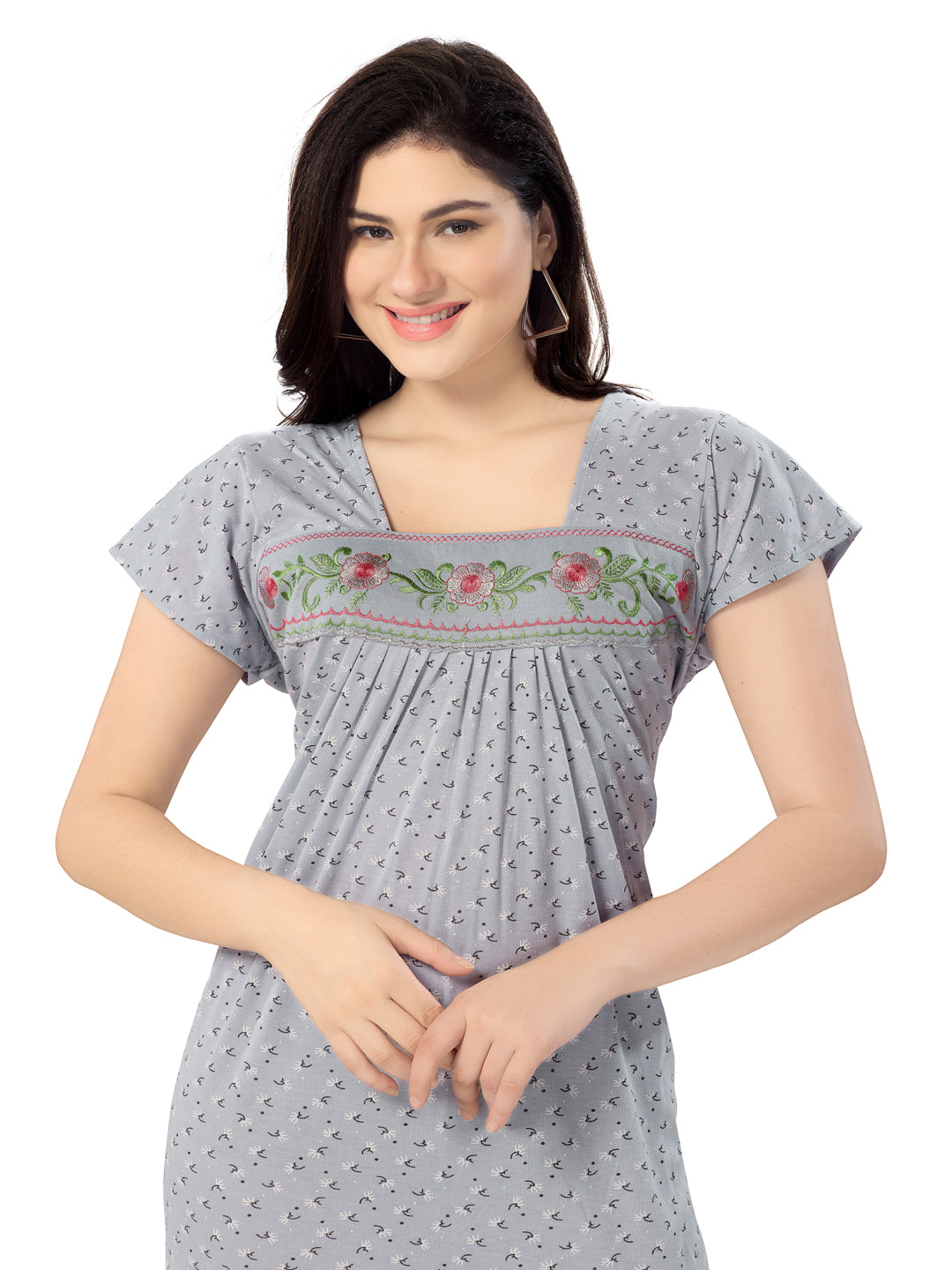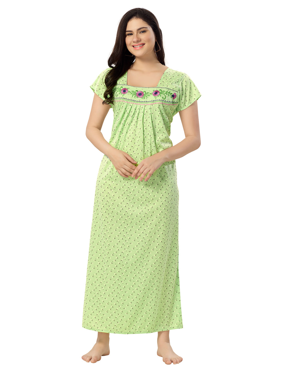 Women's Pure Cotton Blended Printed Maxi Dress for Daily & Night Wear Floral Nighty